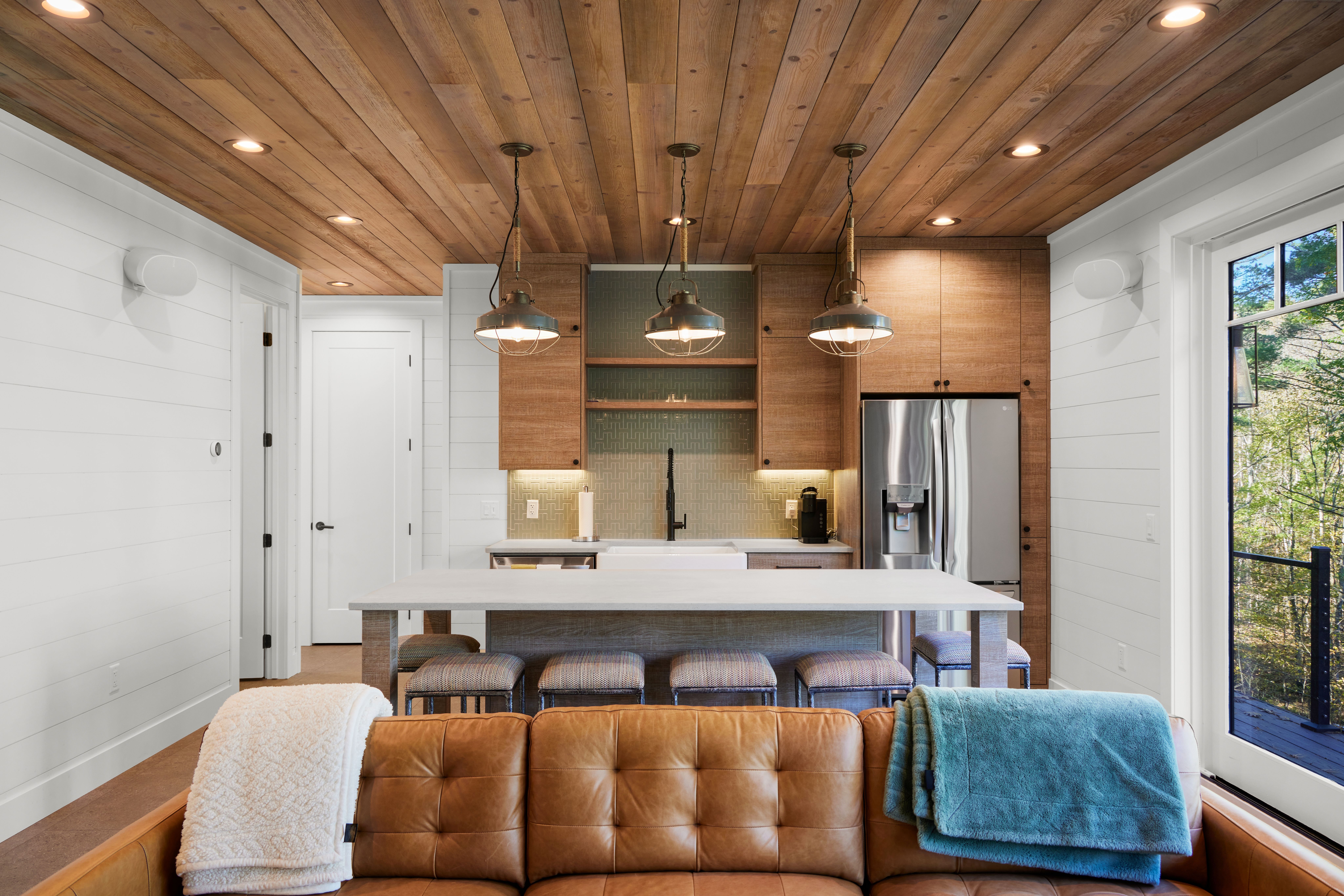 A modern lake retreat bunk house designed around clean lines, warm wood tones, and intentional simplicity. Thoughtful lighting, natural materials, and a highly efficient layout create a space that feels both contemporary and inviting.