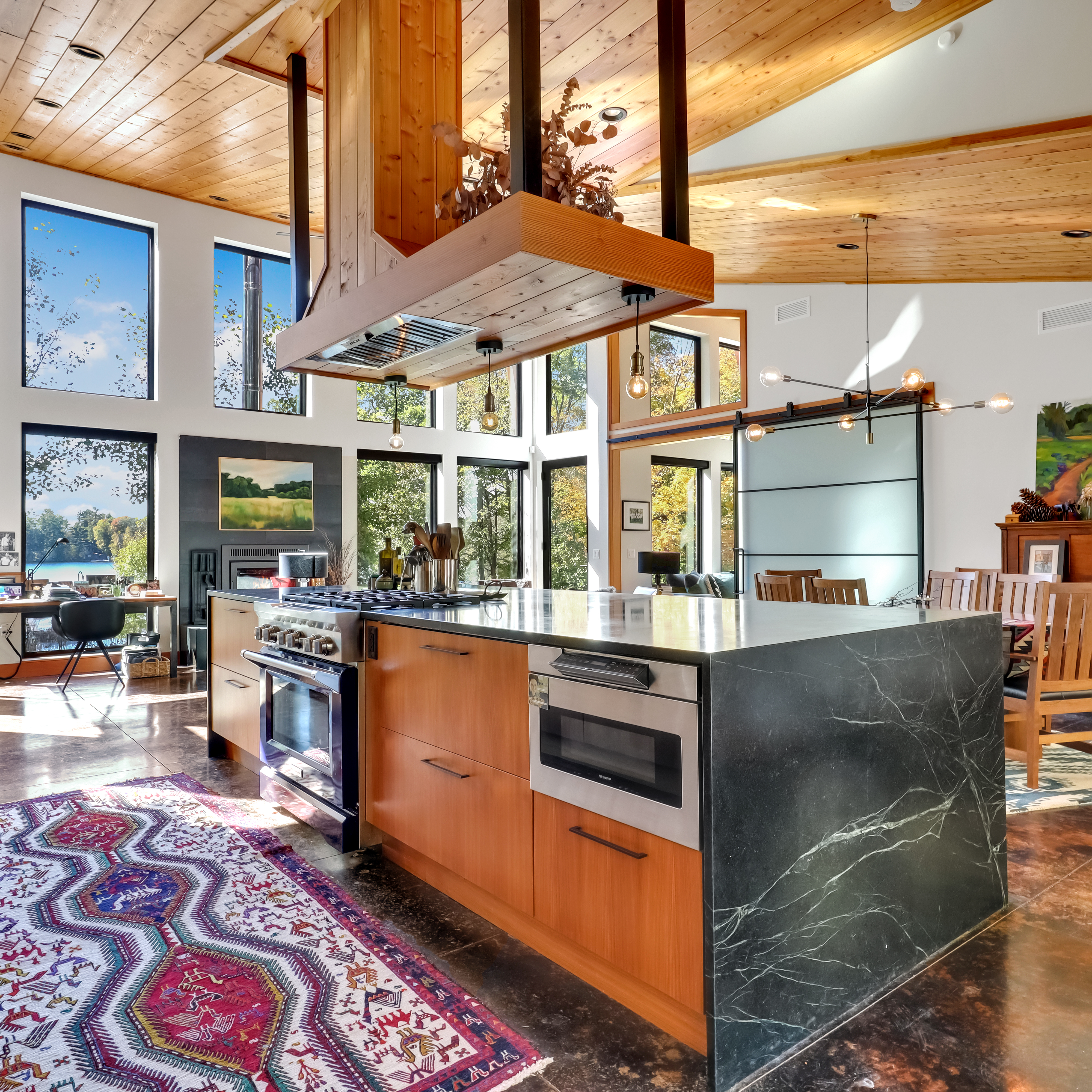 A full modern lake home designed around natural light, bold materials, and open living. Clean lines, custom craftsmanship, and expansive views create a home that feels striking, intentional, and perfectly suited for lakeside living.